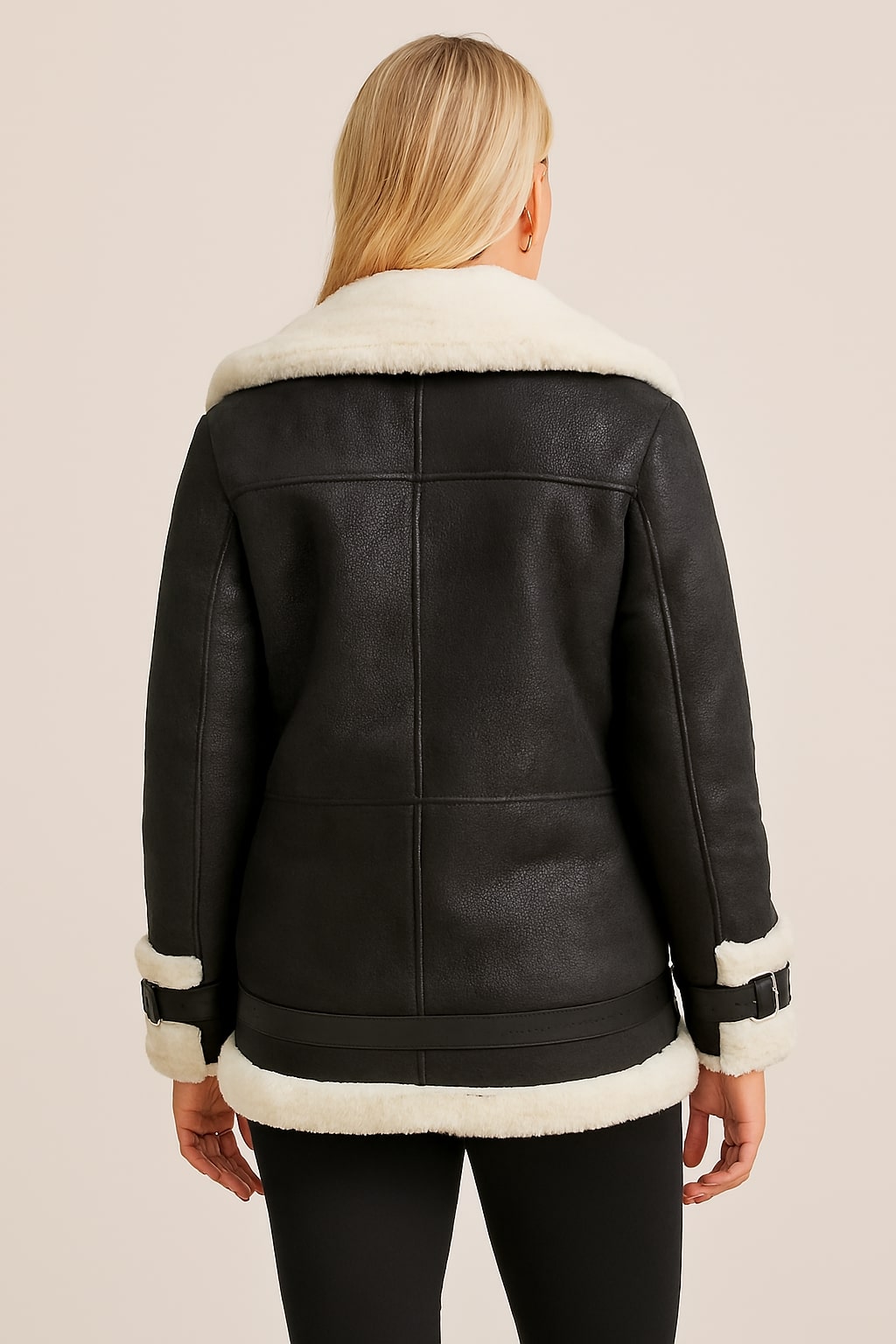 Clara Black Shearling Leather Jacket – Luxurious Winter Warmth for Women