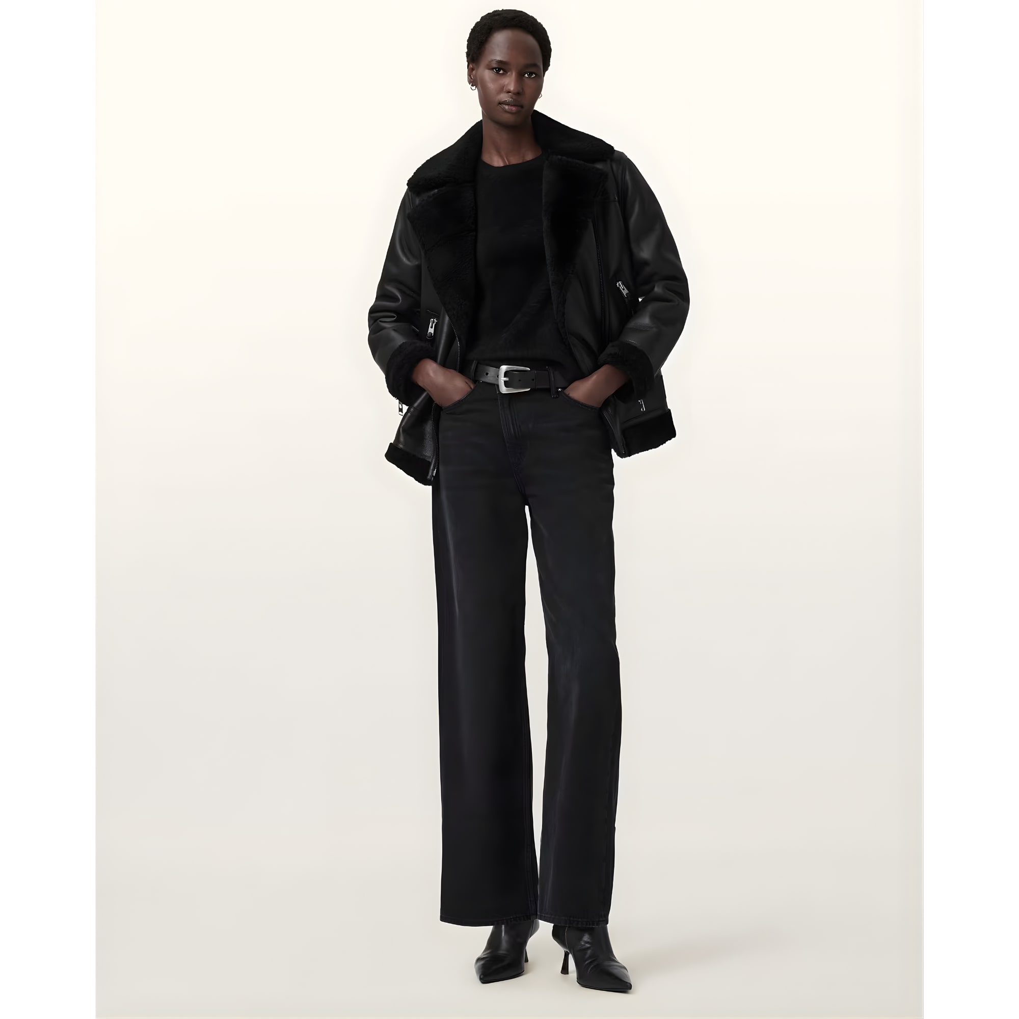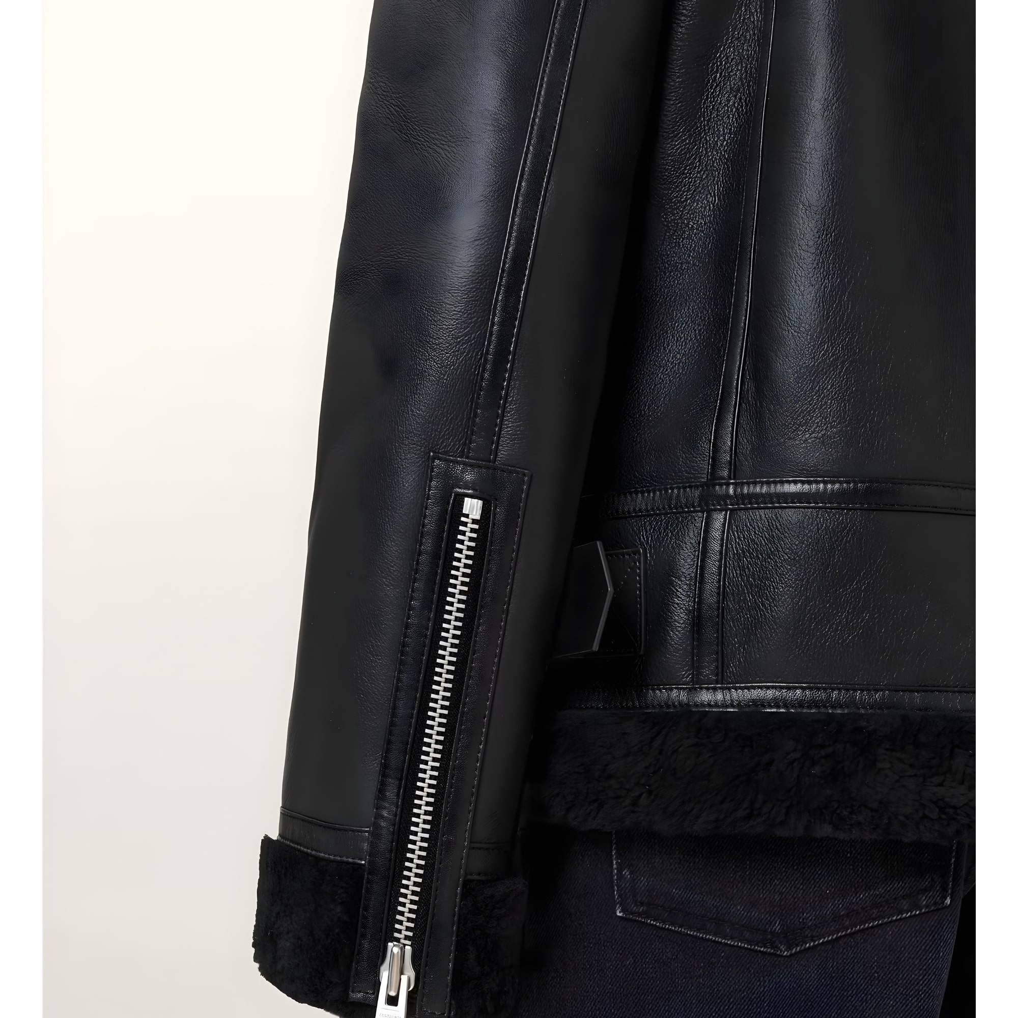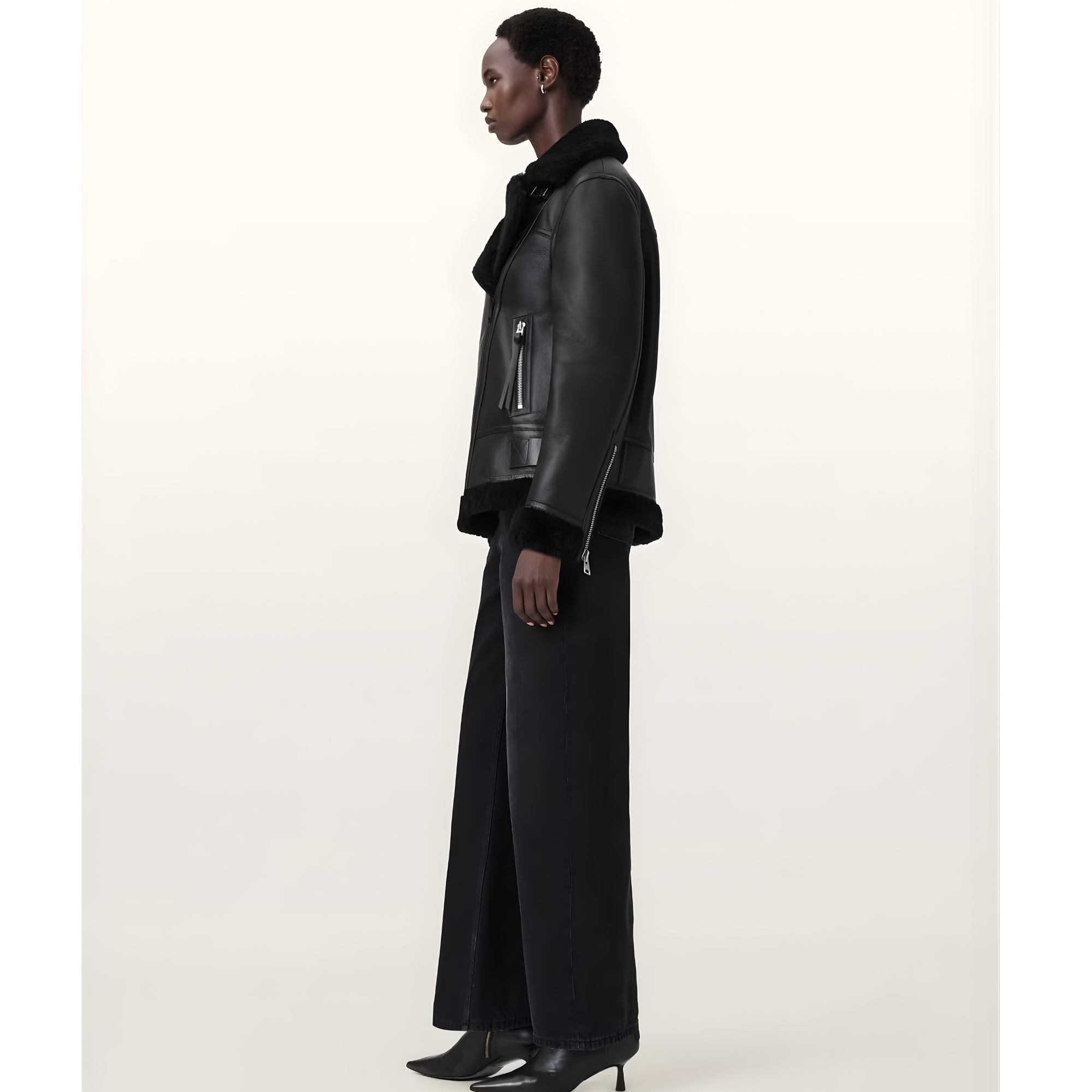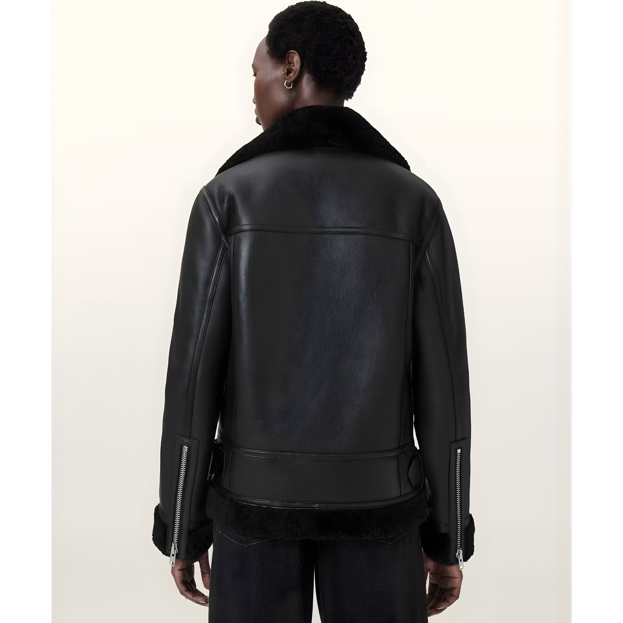 Ava Black Shearling Leather Jacket – Classic Winter Elegance for Women