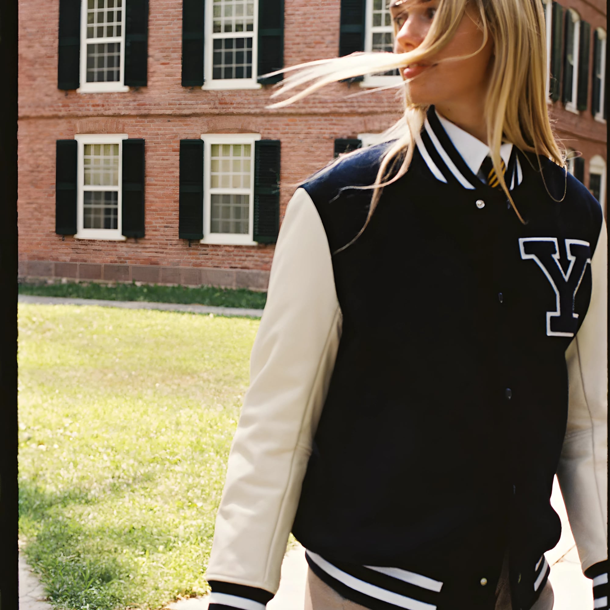 Bold letter “Y” patch on chest