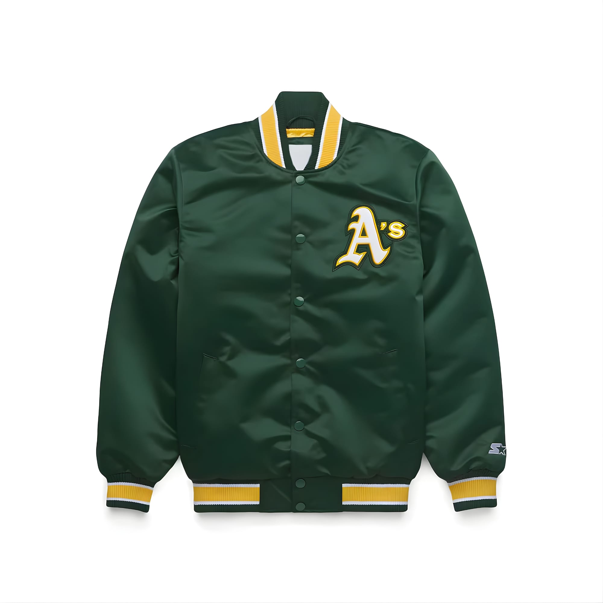 Men’s Green Satin Varsity Jacket – Classic Letter “A” Baseball Snap Button Jacket
