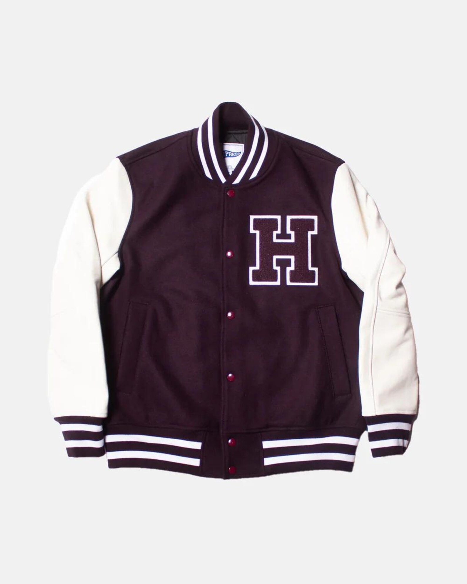Stylish Maroon & White Varsity Jacket with “H” Patch